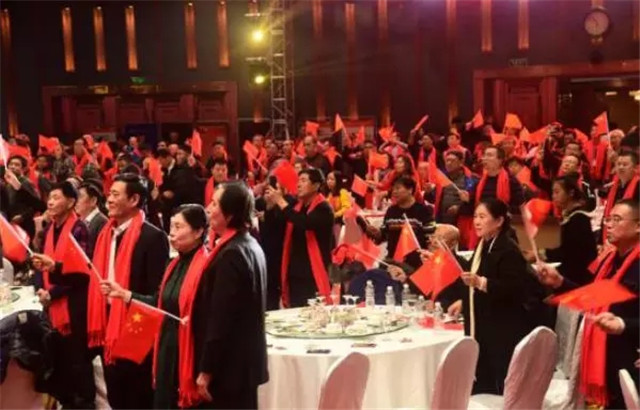 會上在全場高聲合唱《我和我的祖國》歌聲中結束